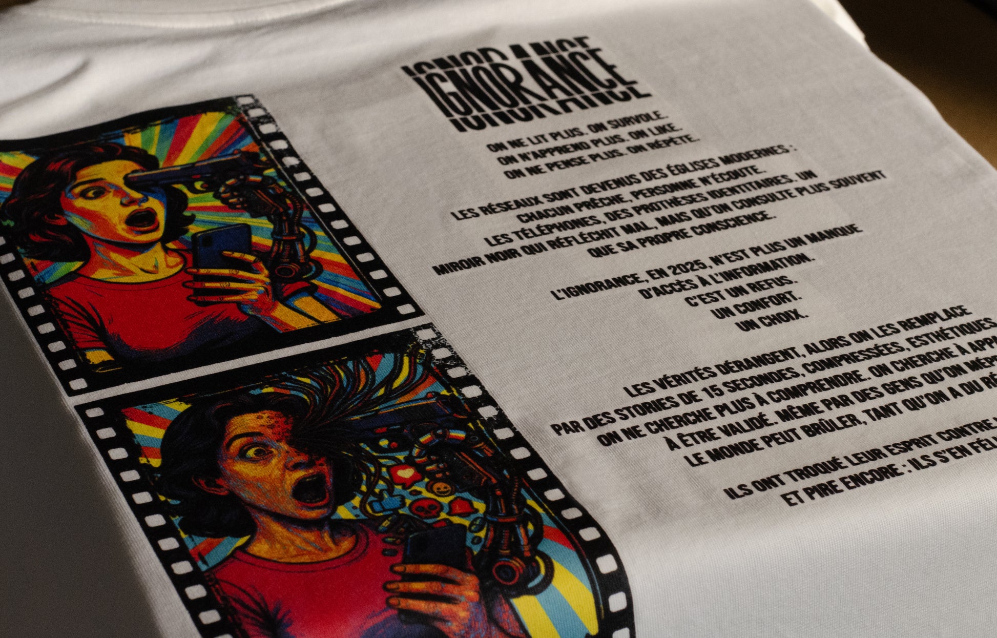 Un t-shirt qui illustre le drame moderne avec une précision brutale :