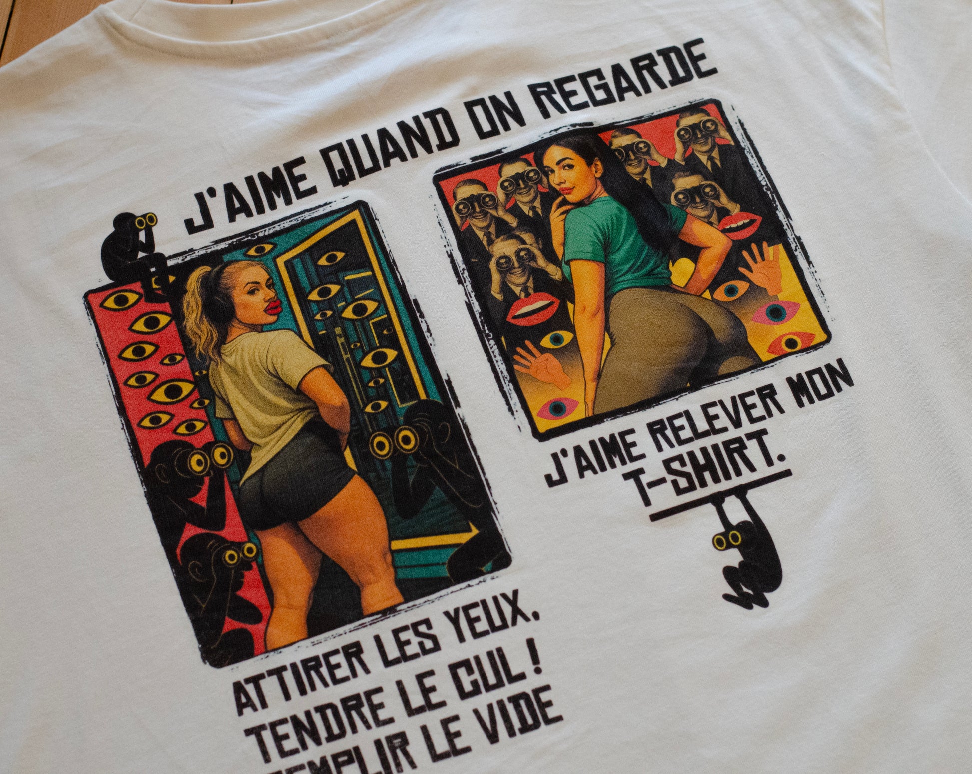 Chaque visuel est imprimé individuellement pour chaque t-shirt, ce qui peut entraîner de légères variations de couleur, d’intensité ou de placement entre les pièces.